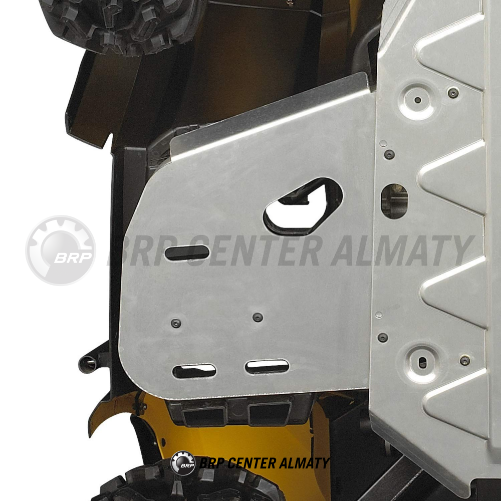 Защита Can-Am 715000547. Дополнительная защита подножек квадроцикла от ударов. Использование только совместно с центральной защитой днища. Алюминий толщиной 3 мм дает легкую и прочную конструкцию. Поставляются попарно. Сливные отверстия для освобождения от воды,  грязи и мусора. Для Outlander 2006-2012 (кроме 400 двигателя и 2012 с 800R и 1000 двигателем), Outlander MAX 2012 и ранее (кроме 400 двигателя).