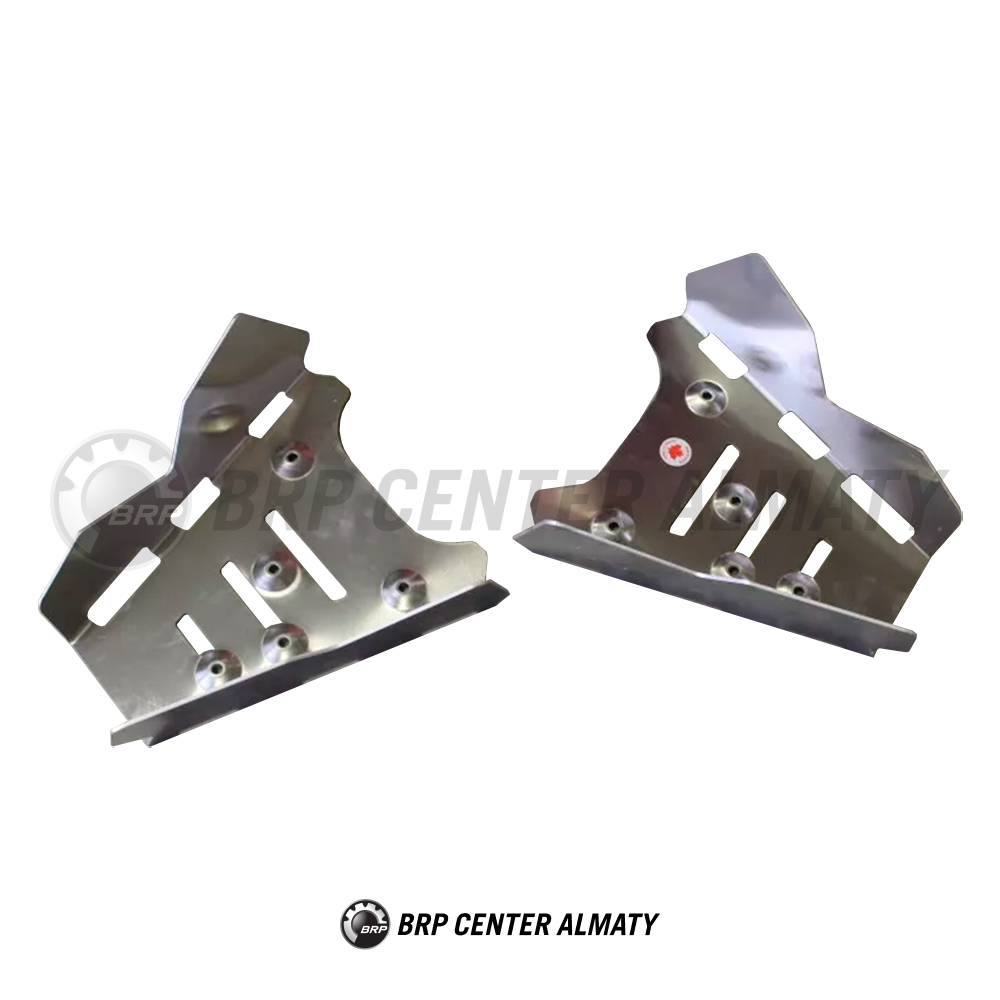 Защита Can-Am 715000547. Дополнительная защита подножек квадроцикла от ударов. Использование только совместно с центральной защитой днища. Алюминий толщиной 3 мм дает легкую и прочную конструкцию. Поставляются попарно. Сливные отверстия для освобождения от воды,  грязи и мусора. Для Outlander 2006-2012 (кроме 400 двигателя и 2012 с 800R и 1000 двигателем), Outlander MAX 2012 и ранее (кроме 400 двигателя).