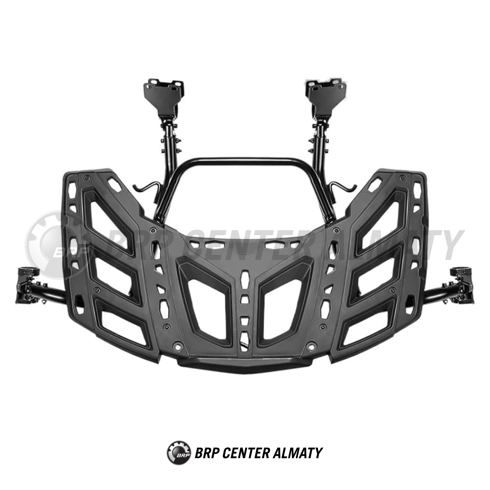 Багажная площадка Can-Am 715003439. Оснащенная фиксаторами LinQ стойка позволяет разместить запасное колесо или дополнительное оборудование, оснащенное креплениями LinQ. В комплект поставки входят специальные ремни, обеспечивающие быстрое закрепление и снятие колеса. Пневматическая система позволяет зафиксировать стойку в поднятом положении.